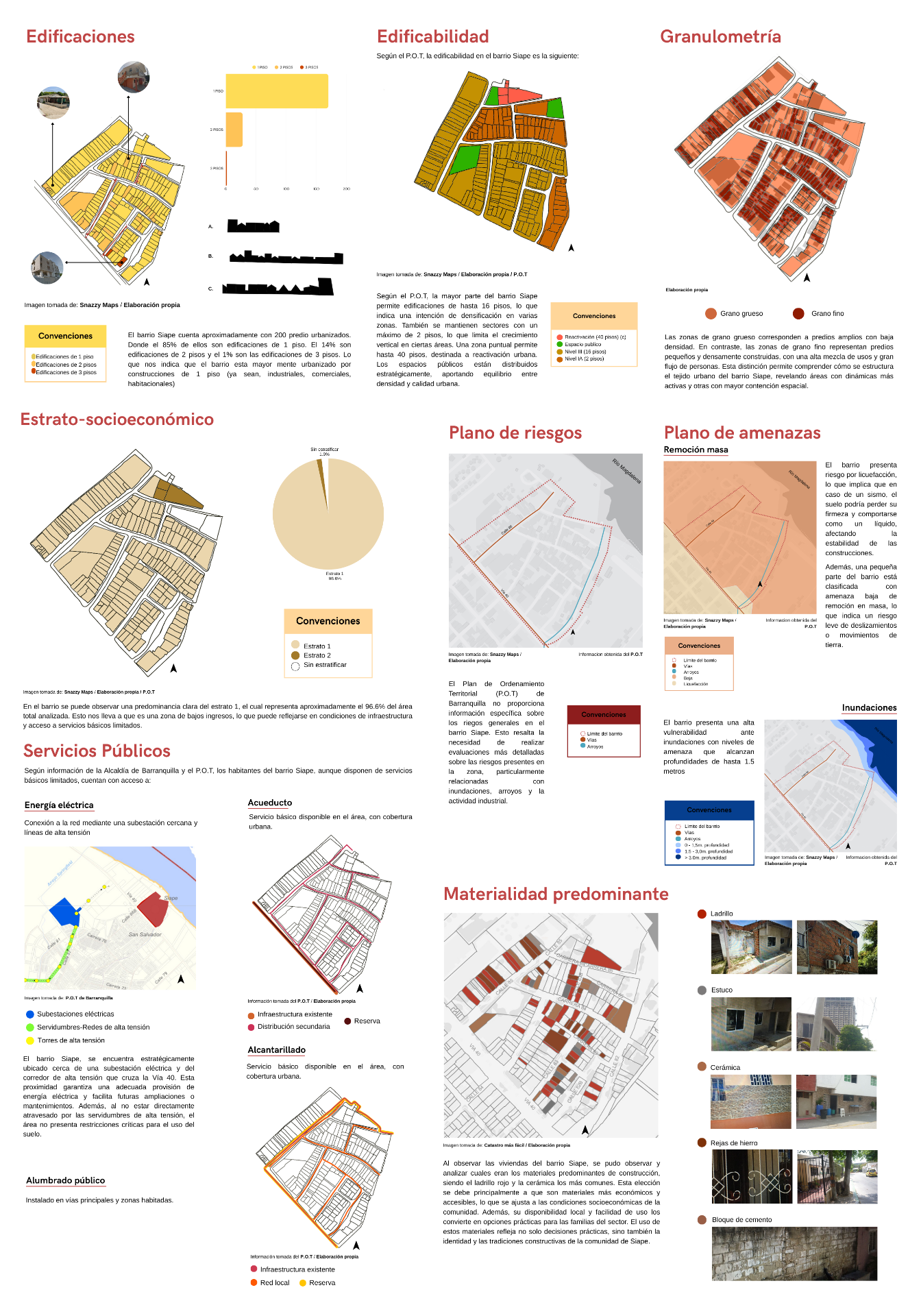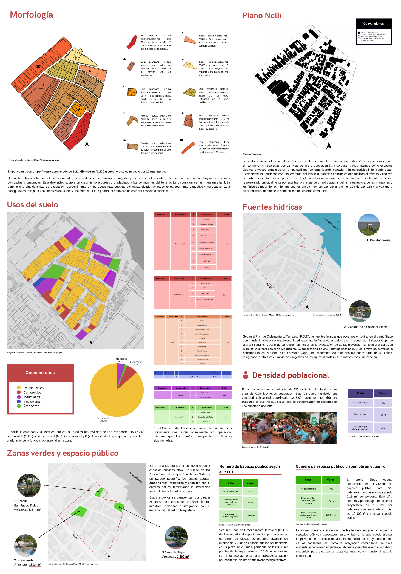 En nuestro análisis del barrio Siape, aplicamos diversos conocimientos adquiridos para comprender y mejorar su entorno urbano. Observamos cómo los elementos medioambientales, como la proximidad al río Magdalena y la presencia de zonas verdes, influyen en el comportamiento de los habitantes y en su calidad de vida.